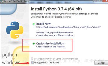 1、  安装python-3.7.4-amd64