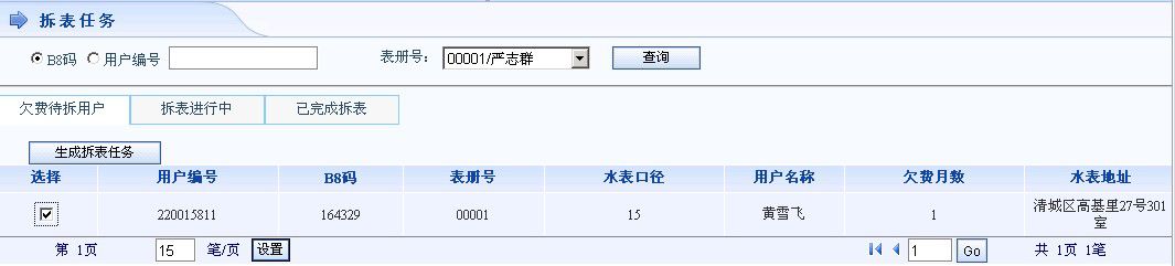 l  拆表完成录入工单并生成尾数水费