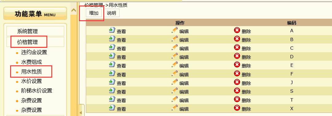 1、 新增用水性质(参照例子:居民生活用水2):价格管理==》用水性质==》增加
