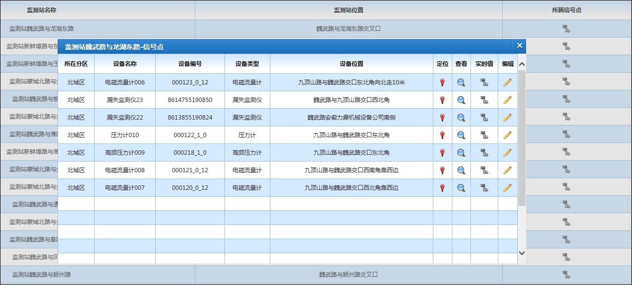 提供完整的监测站和信号点管理功能。系统将分布在管网测压点、管网测流点、管网漏损监测点等地点的信息监测点归类为监测站,在系统中进行统一管理,包括其位置信息、属性信息、下挂监测点信息等。管网中的信号点包括压力、流量、高频压力、腐蚀、漏损等监测信号,在系统中进行统一管理,包括信号点名称、监测数据类型、监测点描述等,可以根据实际情况增加、删除、修改信号点的信息。在系统中,可以通过地图展示监测站的位置、具体信息等。
