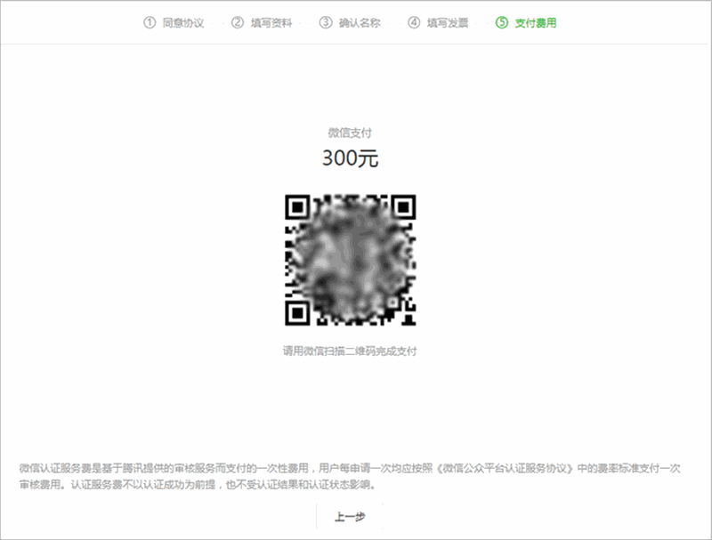 1.  需要准备300元认证费用,微信扫码支付给腾讯公司。