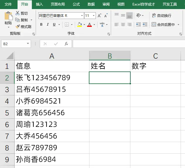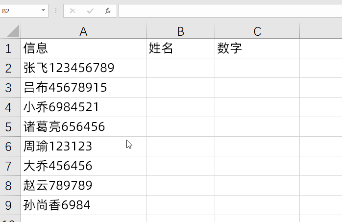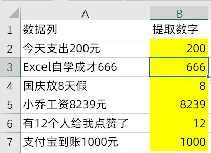 只需要在B2单元格,先输入一个我们想要的结果数字,然后在B3单元格,按下CTRL+E快捷键,就可以把A列所有的文本提取出来了